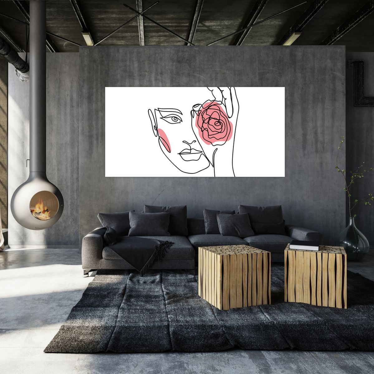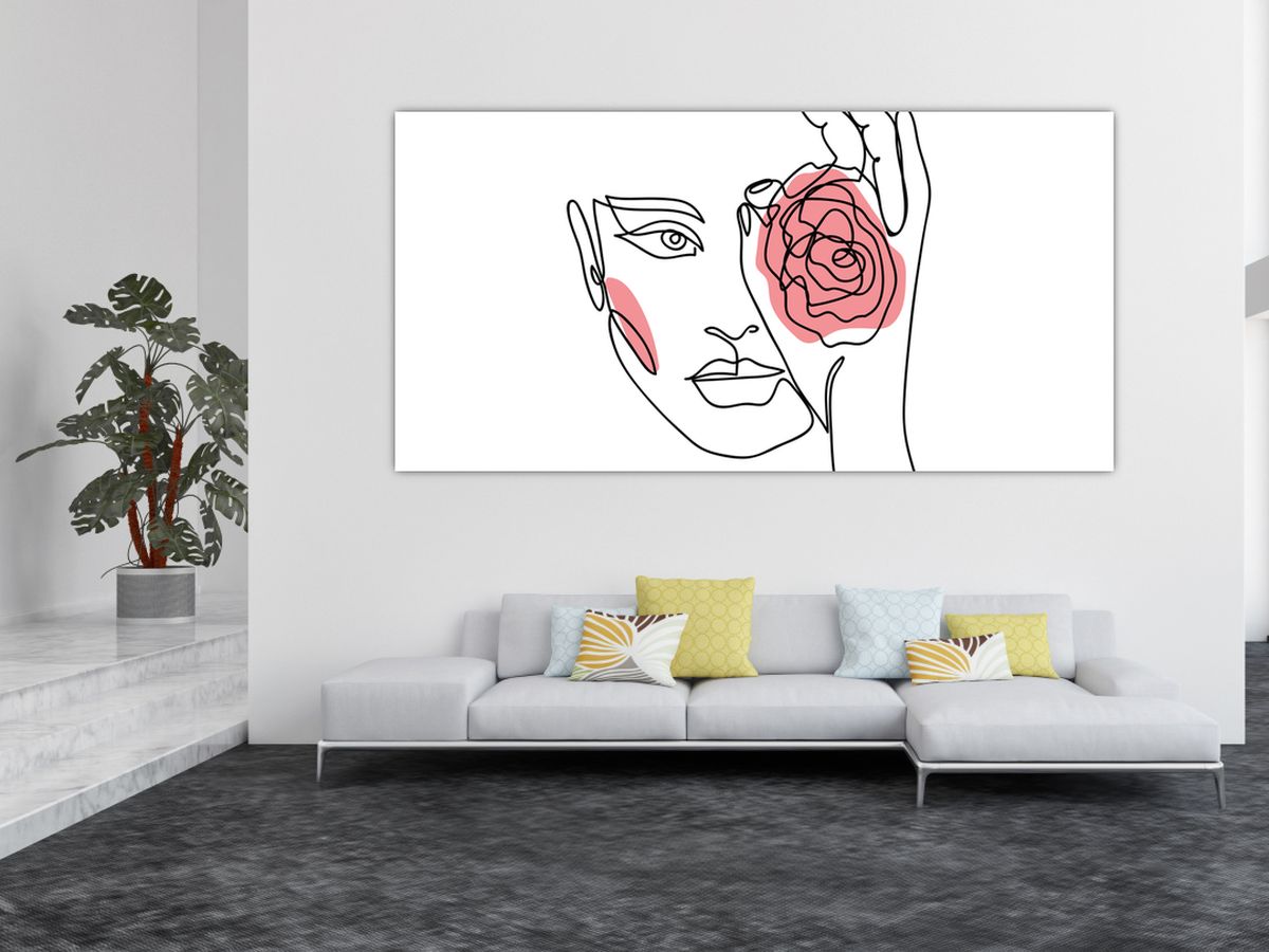 Slika - Crtano lice s ružom