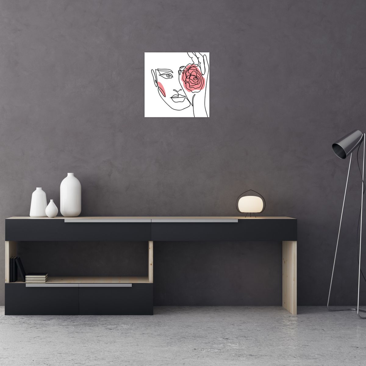 Slika - Crtano lice s ružom
